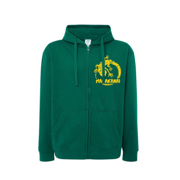 Sudadera Verde con capucha, cremallera logo en Mostaza.